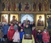 В благословение и в память о встрече его Высокопреосвященство вручил гостям иконки собора святых Киевской духовной академии и сладкие подарки.